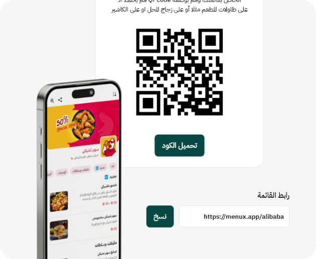 كما يمكنك تخصيص عرض المنيو بلغات مختلفة مثل العربية، الإنجليزية والتركية.